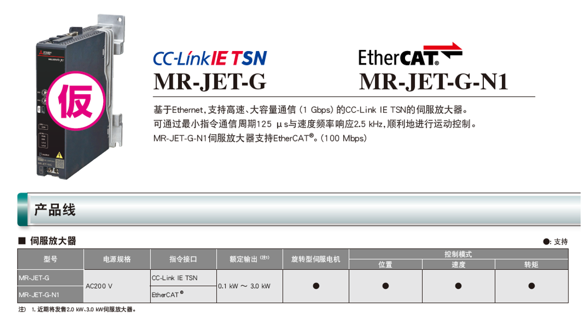 三菱伺服電機(jī)MR-JET-G型號(hào)產(chǎn)品介紹: